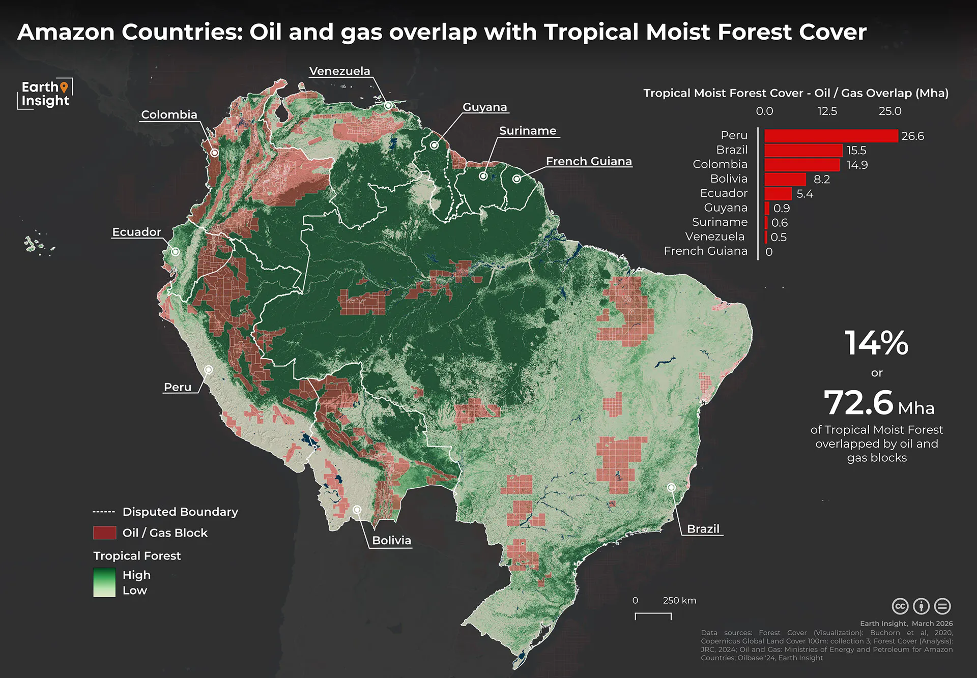 Oil and gas blocks overlap with a fifth of forests in the Amazon, Congo Basin and SE Asia – policies are needed to transition away from fossil fuels and halt deforestation together